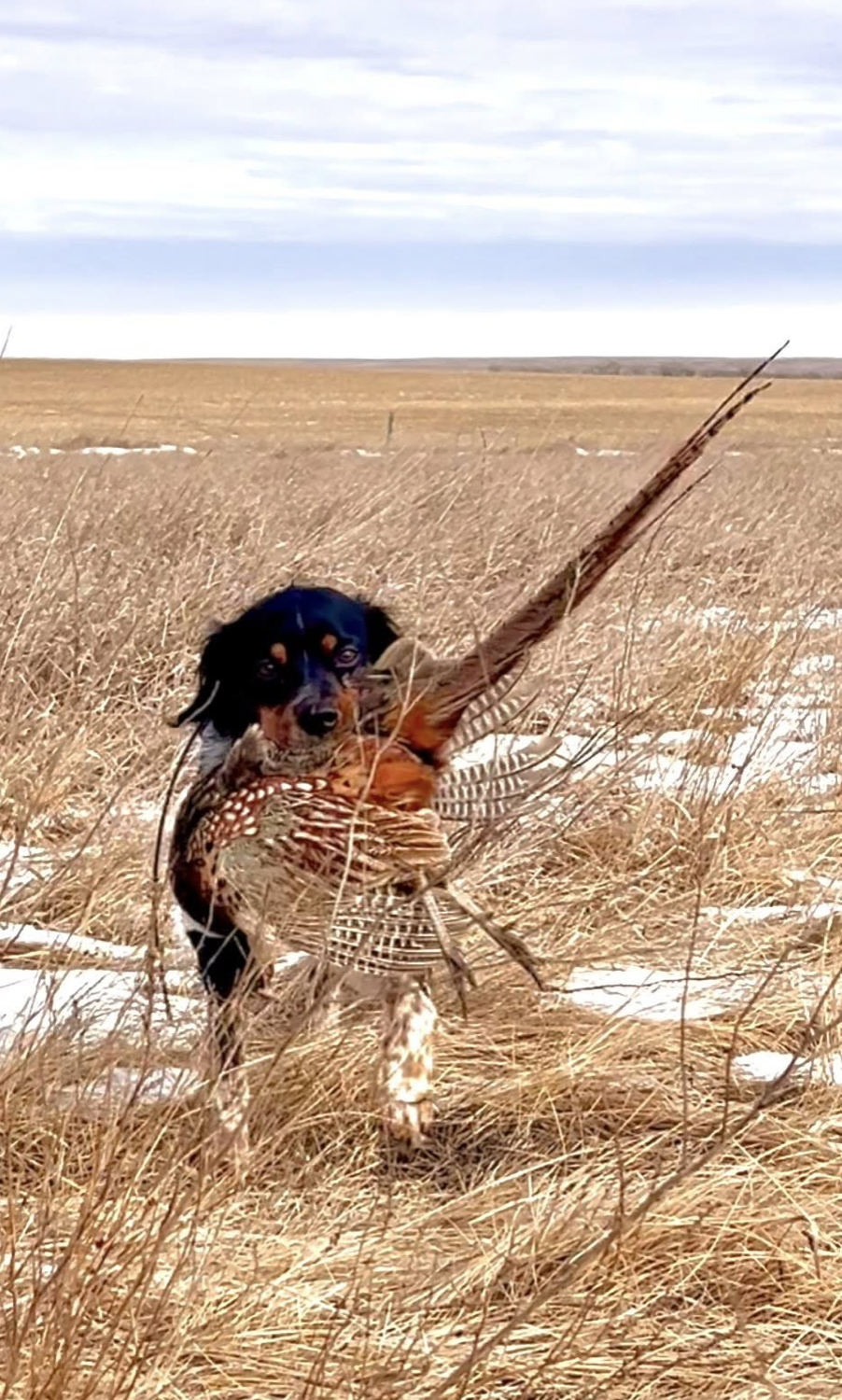 At just 6 months old, Vexie scored her first point and retrieve on a Montana ringneck. Her first hunting season? Over a hundred pheasants, plus numerous Huns and a couple sharpies.